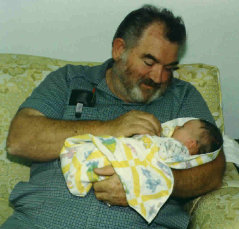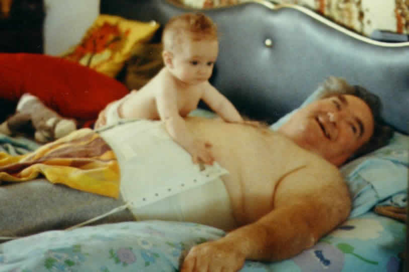 | Mary and I took a vacation during the Christmas season of 1984. We visited her parents and mine. At the time dad was in traction because he reinjured his back. His health did not stop him from playing with Ben. This is the last photo of Ben with my father. Dad died of a stroke in January of 1985. | |||